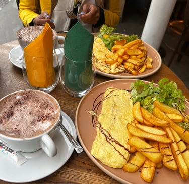 In Montmartre, we had the best omelette I have ever tasted ( light , fluffy and full of flavor ) served with rich hot chocolate and perfectly crispy, savory potatoes. It was the kind of comforting meal that recharged us completely and gave us the energy to keep exploring the city that afternoon.